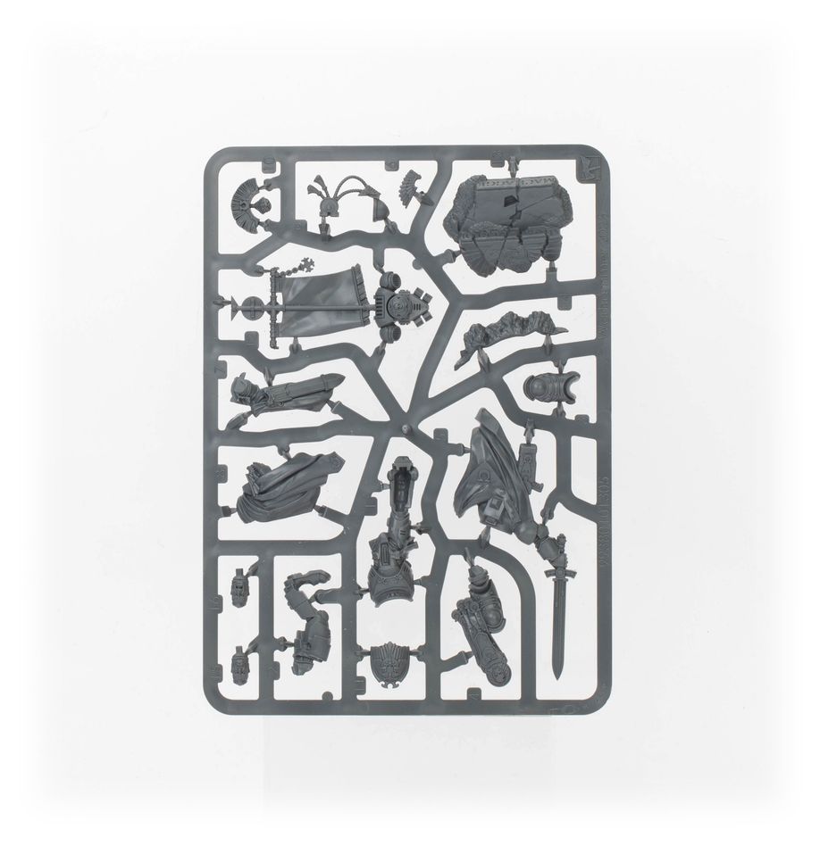 Esta espectacular miniatura está ataviada con galas y marcas de honor acordes a su estatus. Empuña en alto la legendaria Espada tormentosa Talassariana, porta su ornamentado casco en la otra mano, y está armado con una pistola de plasma artesanal para debilitar a los enemigos antes de rematarlos. El kit viene con dos cabezas —una estoica y la otra gritando desafiante— que te ofrecen un cierto grado de personalización para tu formidable guerrero.