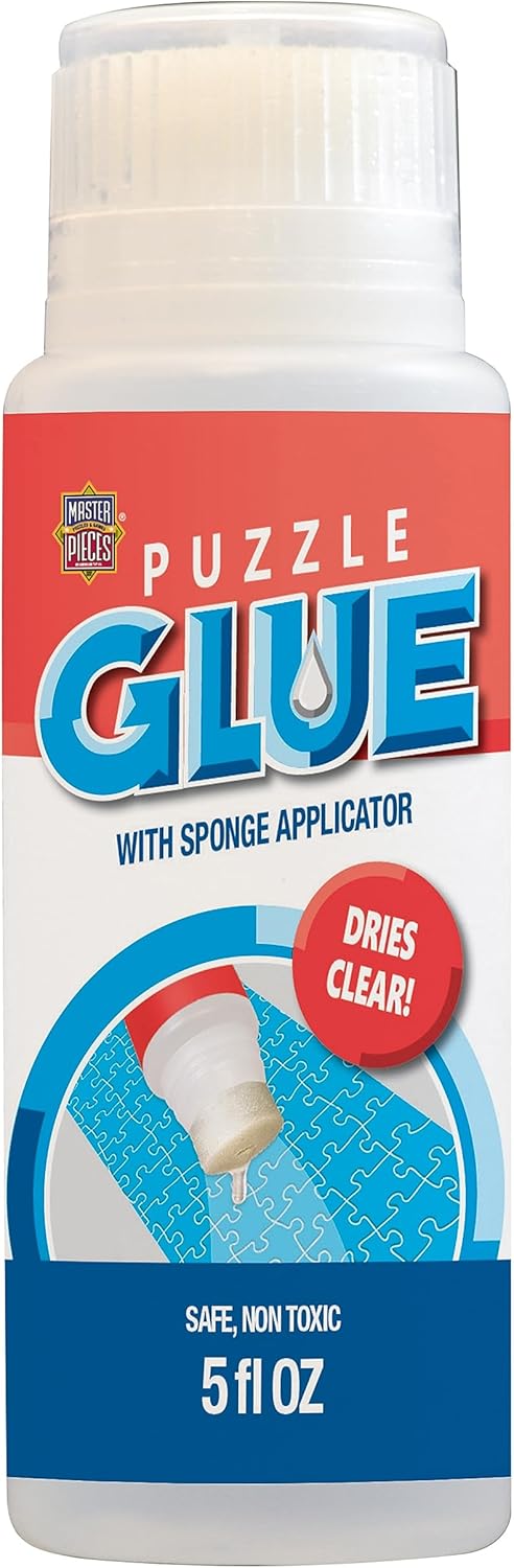 El pegamento para rompecabezas MasterPieces es una manera fácil de preservar tu trabajo. Incluye pegamento suficiente para dos rompecabezas de 1000 piezas. Incluye un aplicador de esponja integrado para un pegado de rompecabezas más rápido y limpio. El pegamento se seca rápido, es transparente y limpio. Cubre ambos tamaños de rompecabezas para mayor resistencia.