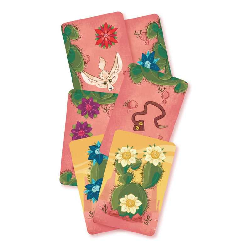 Elige cualquiera de las seis cartas que hay en el centro de la mesa, tomándola por uno de sus cuatro lados. Decide si le das la vuelta por el lado izquierdo, derecho, superior o inferior. Si el lado elegido muestra un cactus... ¡Ouch! Te has pinchado y no has podido recoger la flor; deja la carta en la caja. En caso contrario, quédate la carta en tu zona de juego. A continuación, rellena la fila de cartas para que siempre haya seis disponibles. Para determinar el ganador, hay que sumar un punto por cada flor obtenida, la bonificación de cinco puntos para el jugador o los jugadores que tengan más flores rojas y una última bonificación de ramo silvestre: cuatro puntos adicionales por cada conjunto de cuatro flores de colores distintos que tengas. Quien sume más puntos, ¡ha ganado!