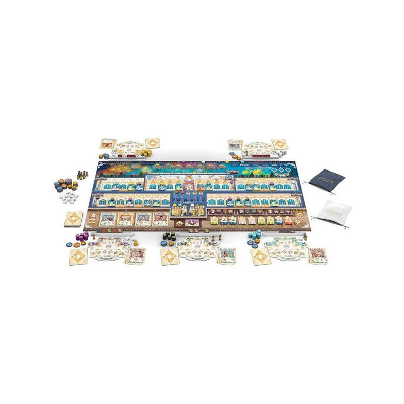 En Rococó: Edición Deluxe, eres el dueño de una distinguida sastrería que se esfuerza por aumentar su prestigio. En cada turno, juegas una carta de empleado que te permite realizar una tarea, como contratar a un nuevo empleado para tu equipo, confeccionar exquisitos vestidos y levitas para alquilar o vender, o financiar algunas de las numerosas decoraciones. Sin embargo, los empleados no siempre pueden realizar todas las tareas, así que debes planificar cuidadosamente cómo dirigirlos, especialmente porque cada empleado otorga una bonificación única, incluyendo algunas que generan prestigio. La Edición Comercial del Juego de Mesa Rococó Deluxe incluye la expansión "Joyero", la expansión "Vestidos Festivos" y la promoción "Vestidos Elegantes", además de una nueva expansión para el modo individual "Madame du Barry". Esta versión de Rococo presenta cambios con respecto a la edición anterior del juego base, junto con componentes premium que incluyen fichas de hilo y encaje de poliresina personalizadas; marcadores de jugador de madera estampados con calor en papel dorado; bolsas de tela de terciopelo para prendas, fichas de seda y joyas; y tableros de perforación mejorados para las prendas, la seda y las monedas. Idioma: inglés Edad mínima: 14 años Cantidad de jugadores: 1-5 Tiempo de juego: 60-120 minutos